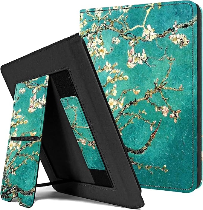 TOKILO Hülle für 7" E-Reader 2024 mit Kickstand, Auto Sleep/Wake, Handschlaufe – B1 Aprikosenblüte